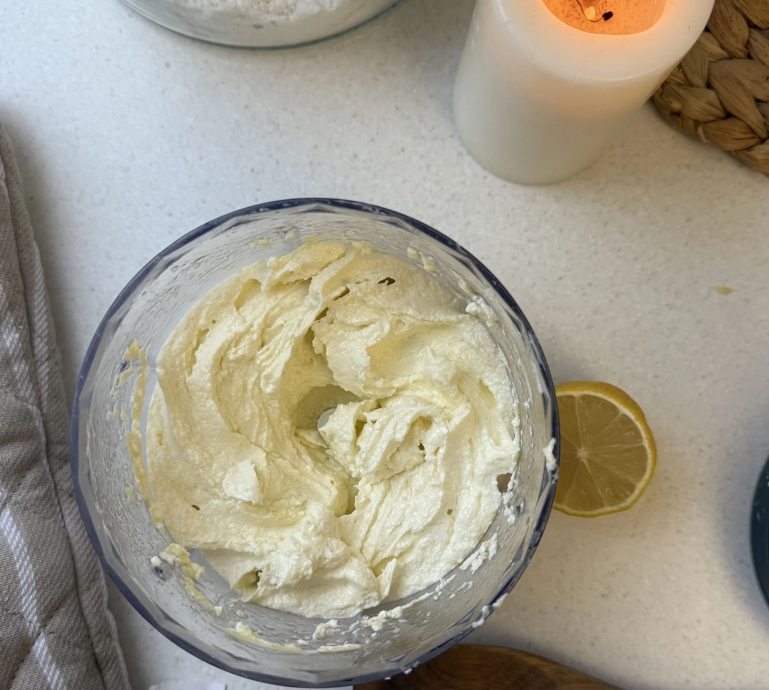 In a food processor, blend feta, Greek yogurt or cream cheese , olive oil, and lemon juice until smooth.